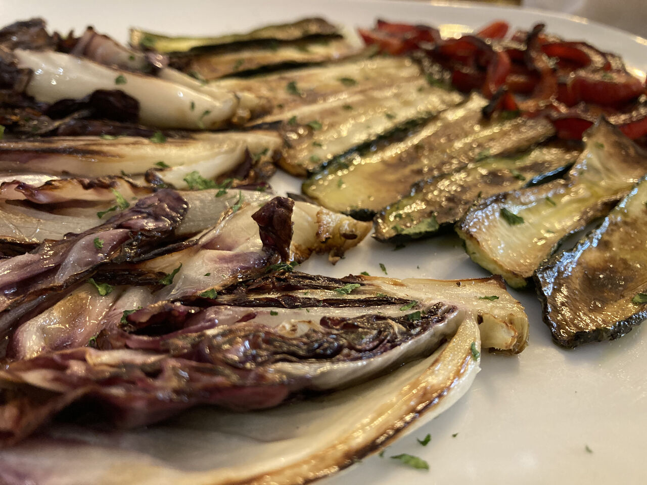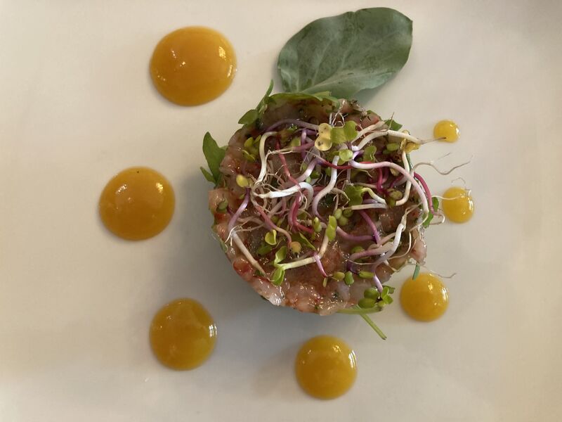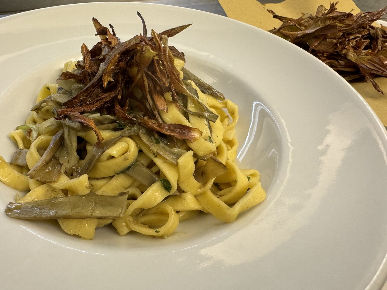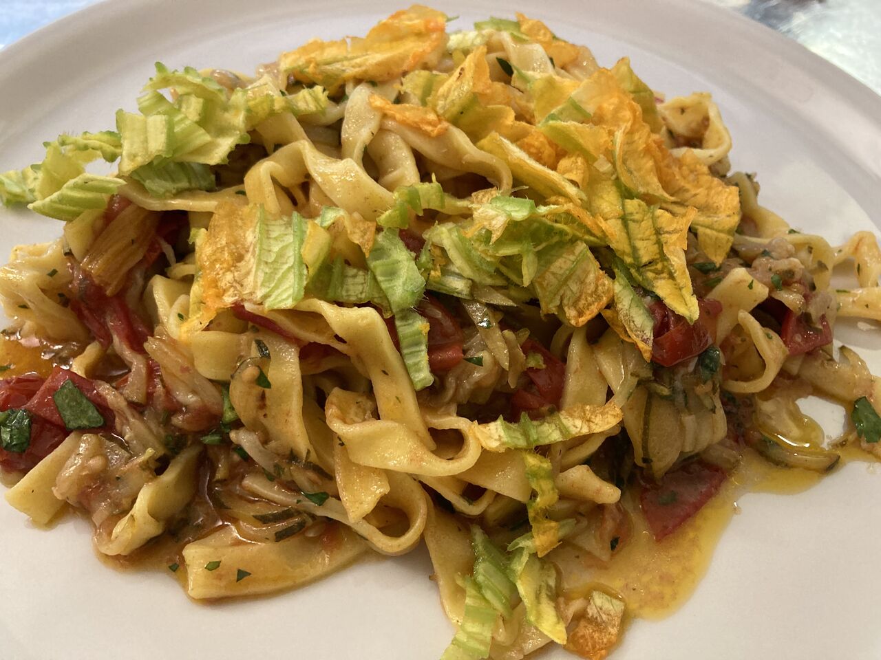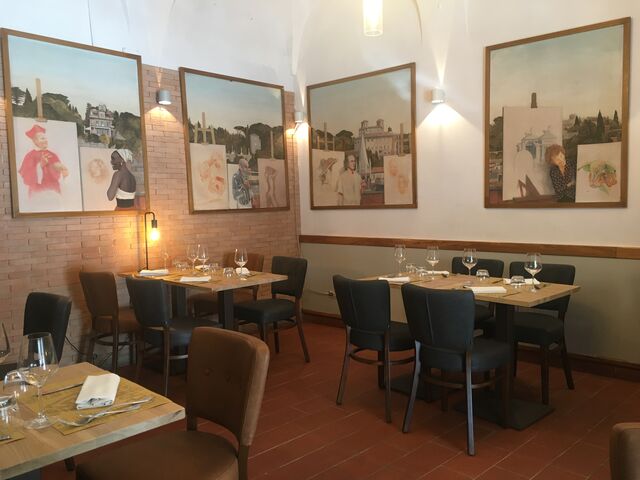 Fiori di zucca fritti ripieni di mozzarella e alici, carciofi fritti e alla Romana (stagionale) Bucatini all’amatriciana, Spaghetti alla Carbonara, Tonnarelli Cacio e pepe, Ravioli alla gricia, Spaghetti alle vongole, Arrosticini abruzzesi, Saltimbocca alla romana, Petto d’anatra con funghi di stagione, Tagliata di tonno con semi di sesamo, Tiramisù, Fondente al cioccolato.